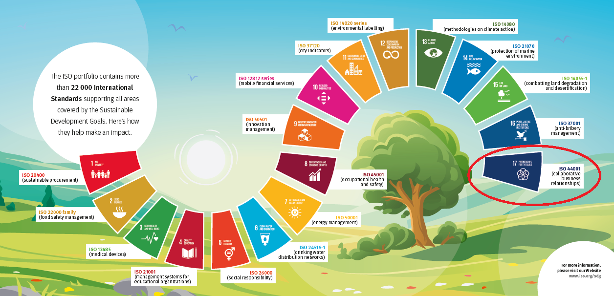 A gestão colaborativa com base na família ISO 44001 é uma das formas de dar resposta ao Objetivo 17 “Parcerias para a Implementação dos Objetivos” dos objetivos de desenvolvimento sustentável das Nações Unidas.